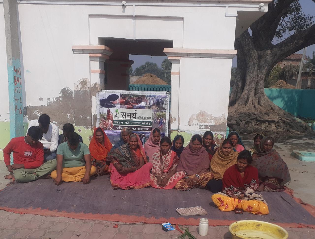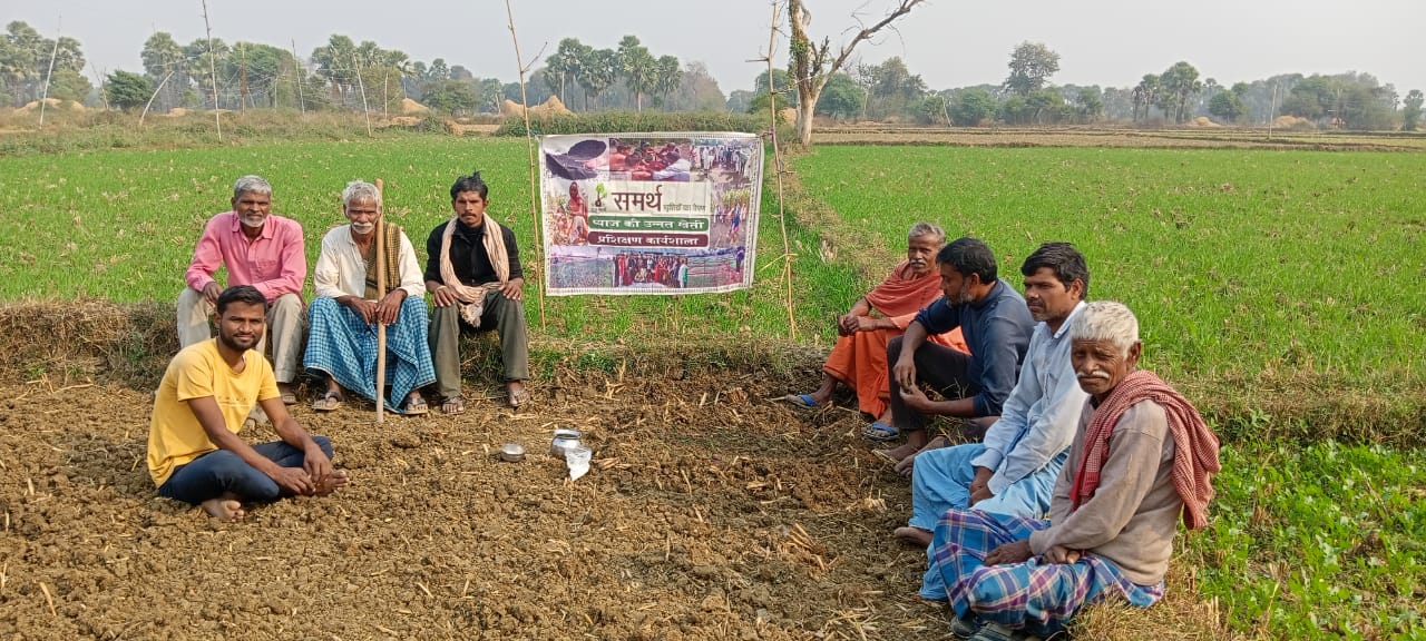 Button Compost Making is a crucial activity under SumArth’s mushroom initiative, where farmers are trained in scientific compost preparation, raw material selection, moisture control, and hygiene practices to ensure better mushroom yield, reduced crop loss, and sustainable income generation.