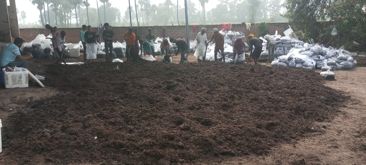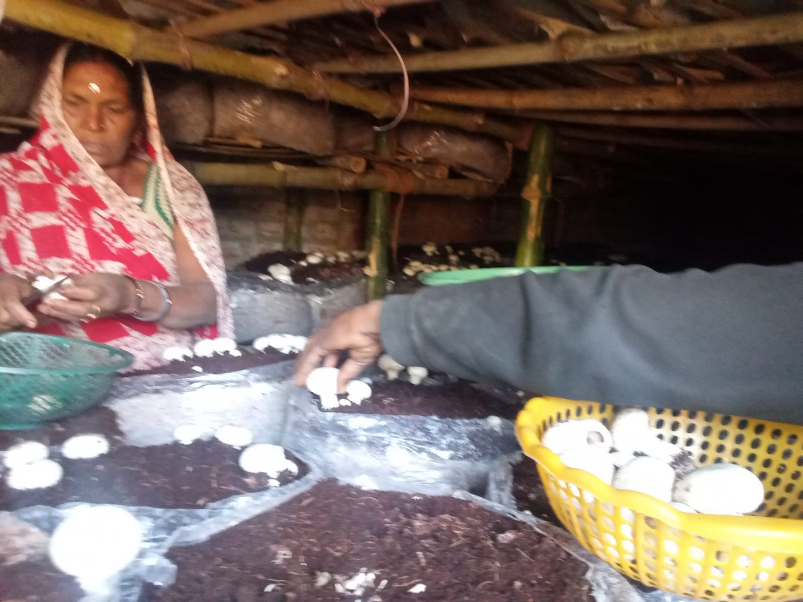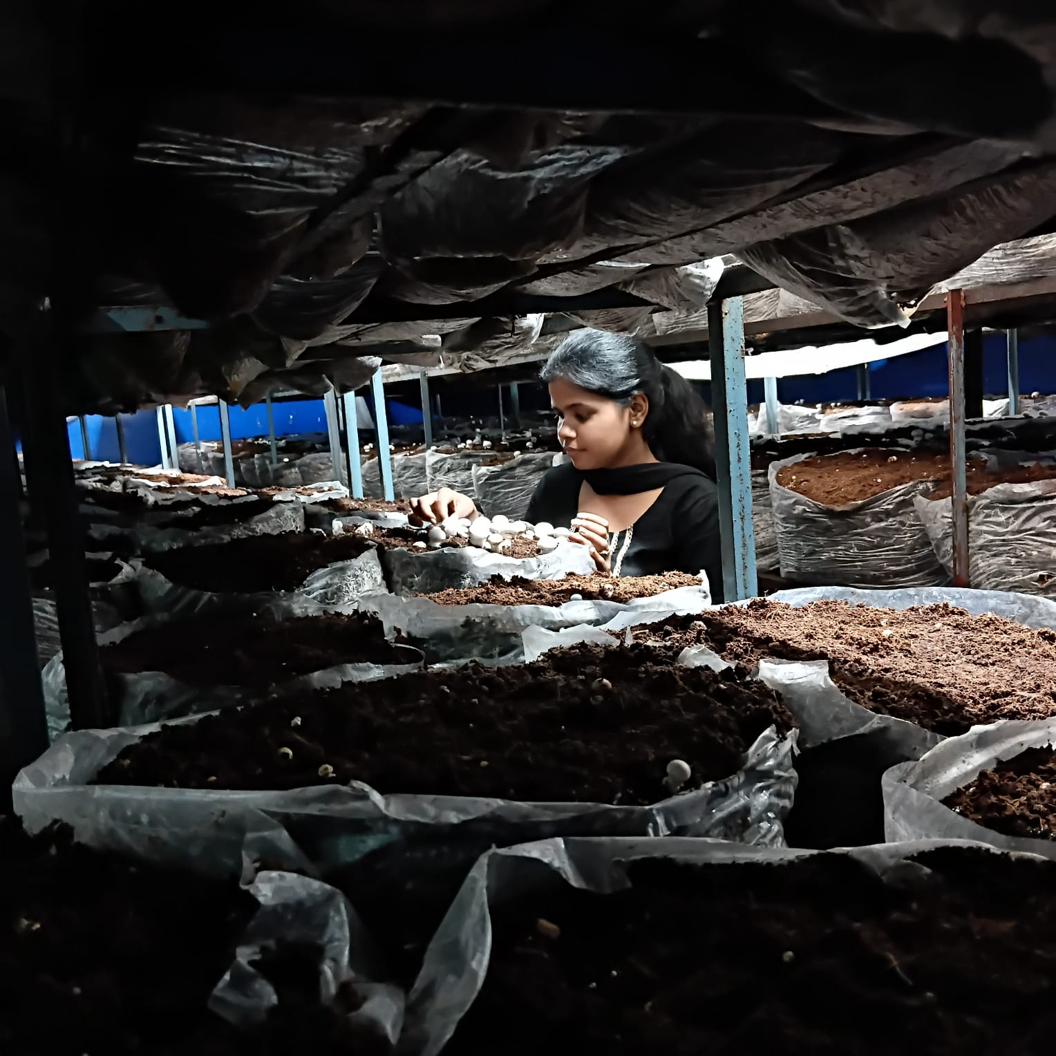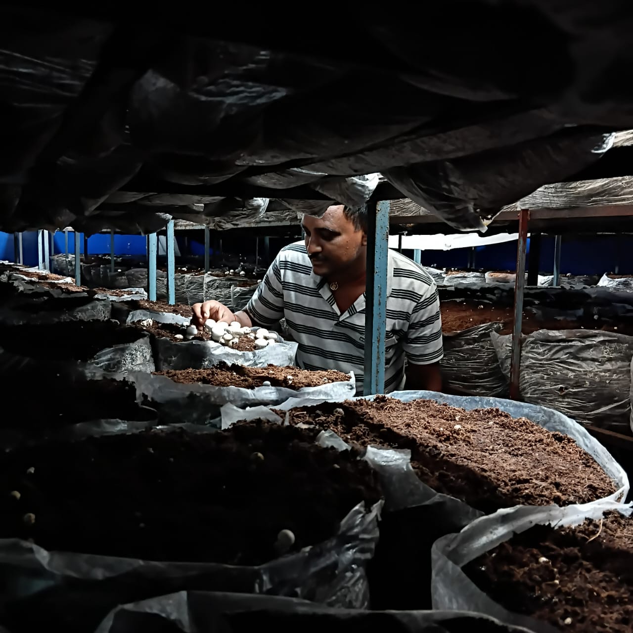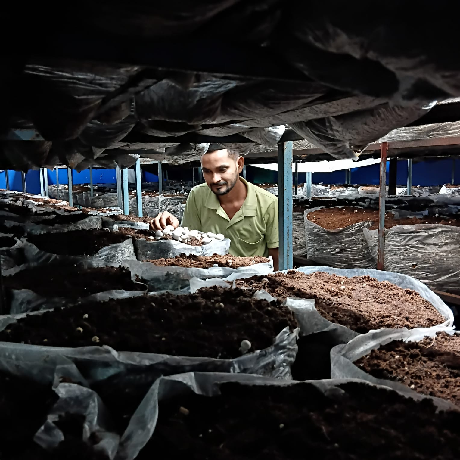 Button Compost Making is a crucial activity under SumArth’s mushroom initiative, where farmers are trained in scientific compost preparation, raw material selection, moisture control, and hygiene practices to ensure better mushroom yield, reduced crop loss, and sustainable income generation.