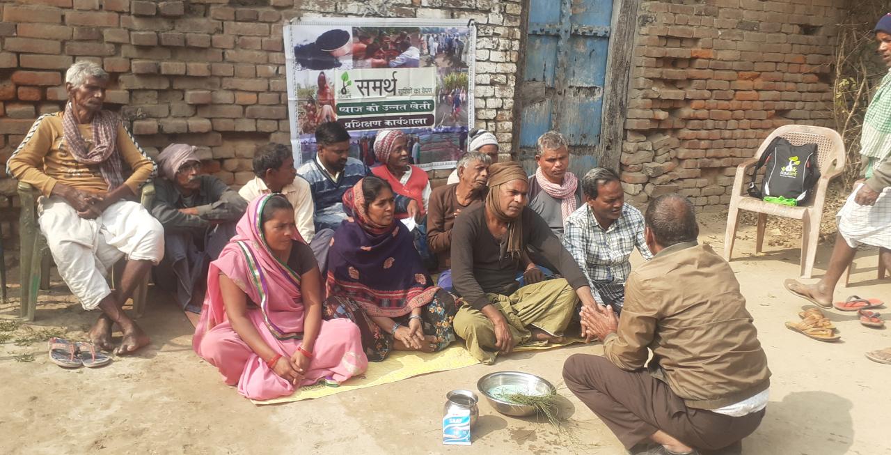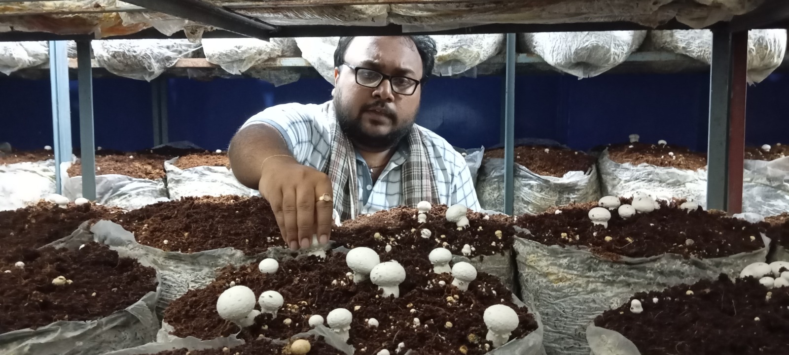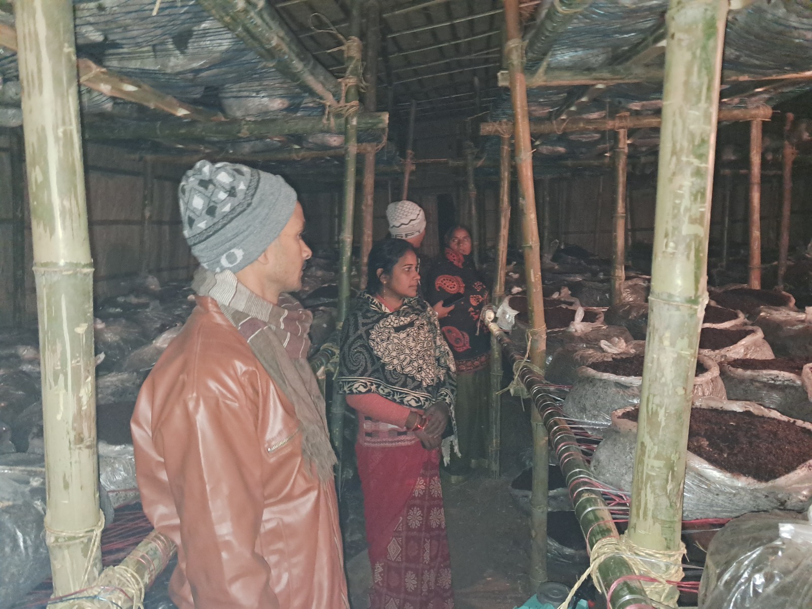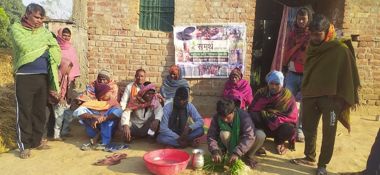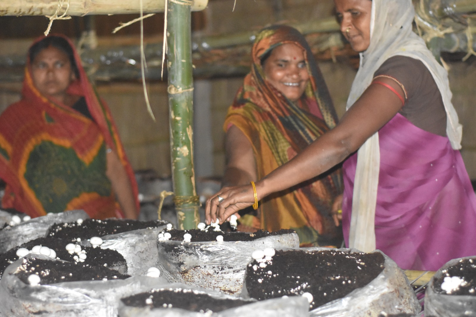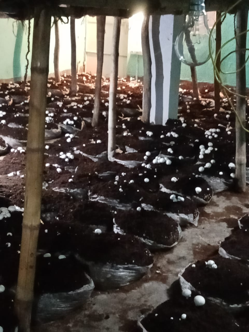 Button Compost Making is a crucial activity under SumArth’s mushroom initiative, where farmers are trained in scientific compost preparation, raw material selection, moisture control, and hygiene practices to ensure better mushroom yield, reduced crop loss, and sustainable income generation.